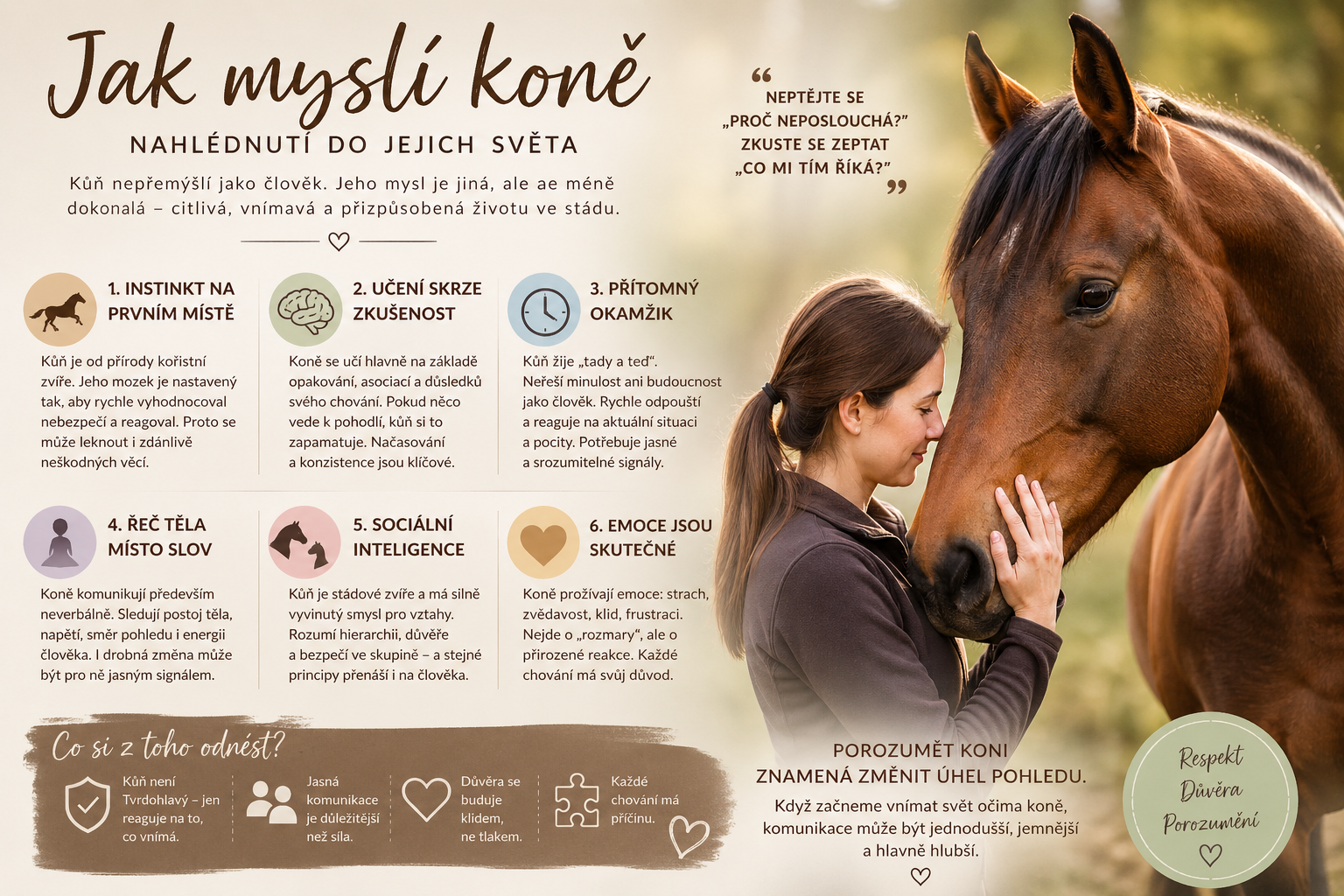Porozumět tomu, jak kůň myslí, znamená změnit úhel pohledu. Neptat se „proč neposlouchá“, ale „co mi tím říká“.