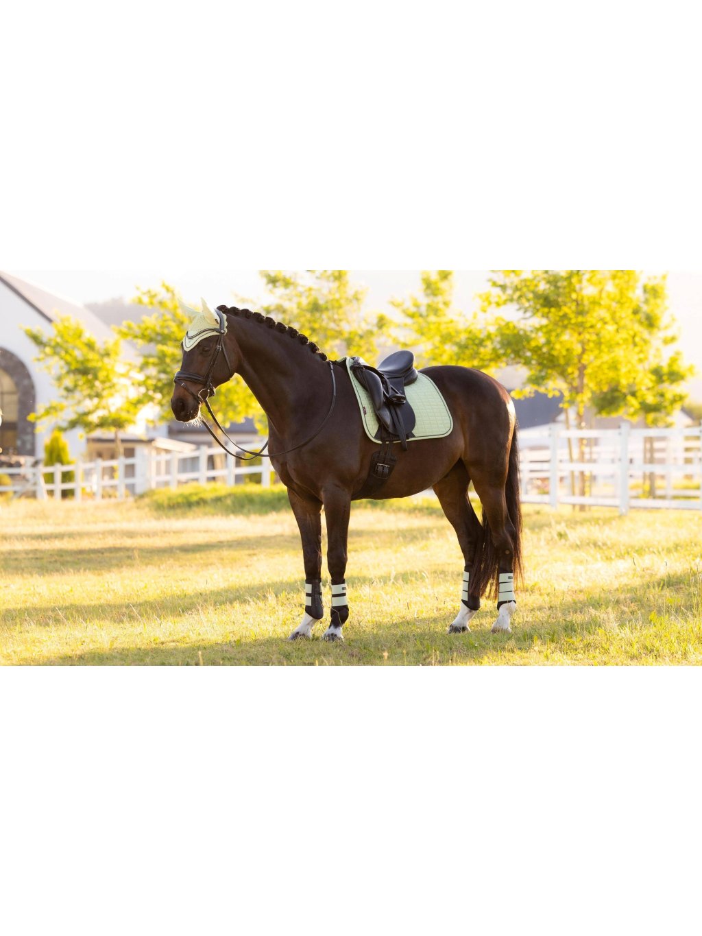 Luxusní svrchní materiál se semišovým efektem, který je zároveň nenáročný na údržbu, je ideální pro každodenní použití. Tvarované lemování se semišovým efektem zabraňuje deformaci dečky. Přírodní bambusová podšívka účinně absorbuje a reguluje pot pod sedlem, je mimořádně příjemná a bezpečná a minimalizuje tření i u koní s citlivou kůží.