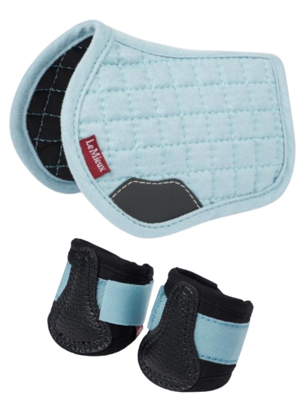 Krásná miniaturní replika skutečného vybavení LeMieux. Sada obsahuje podsedlovou dečku a chrániče na přední nohy.