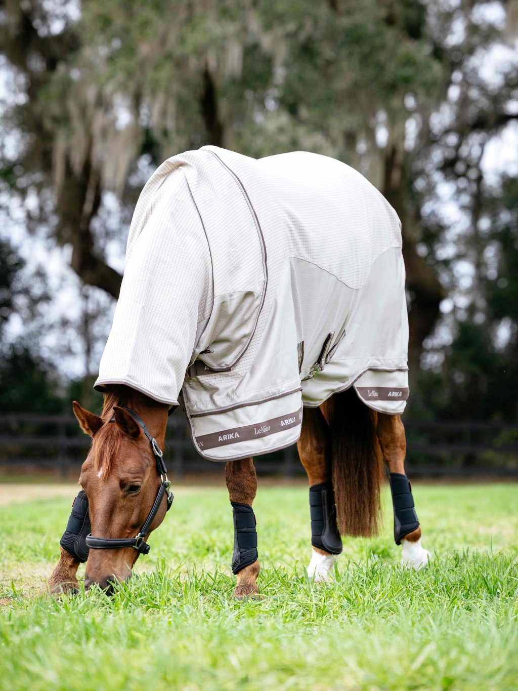 UPF 50+ ochrana proti slunci – vrchní materiál blokuje až 98 % UV záření a chrání citlivou kůži i srst koně během slunečných dní