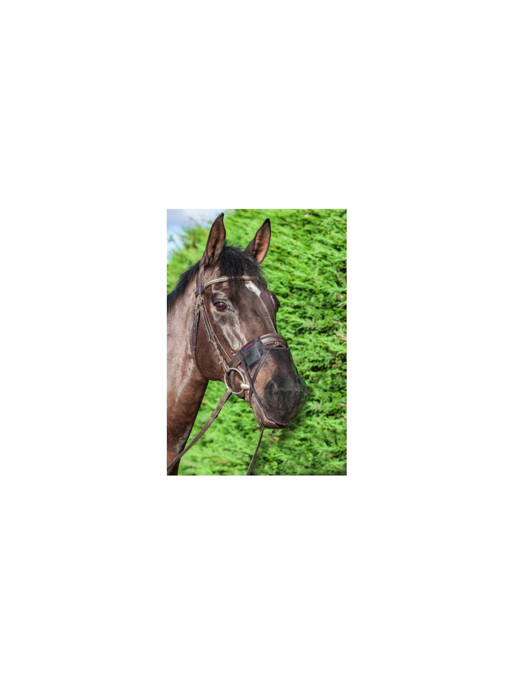 Jemná síťovina účinně filtruje prach, pyl a další částice ve vzduchu a ochraňuje koně před dotěrným hmyzem. Pomáhá od příznaků třesu hlavy (headshaking) a letních alergií.