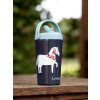 Tato rozkošná cestovní lahev pro děti nabízí možnost uchování tekutin o objemu 480ml. Je ideální do školy, na cesty, na závody či so stáje. Lahev je vyrobena z vakuově izolované nerezové oceli a udržuje teplotu nápojů. Modré šroubovací víčko s výklopným brčkem, které neobsahuje žádné škodlivé plasty (BPA free) usnadňuje pití a zamezuje rozlití. Přenosná rukojeť je ideální pro přenášení malými ručičkami.