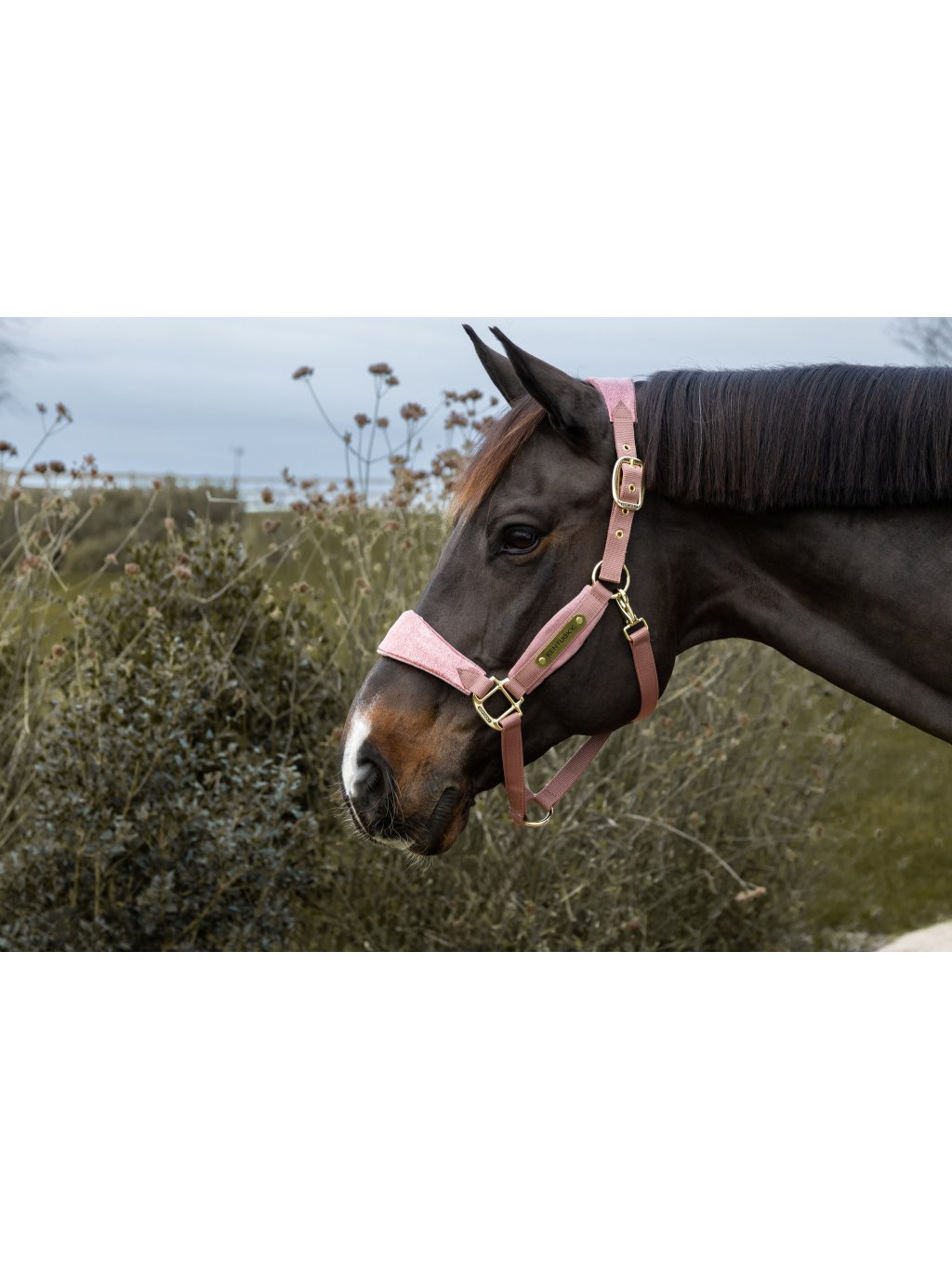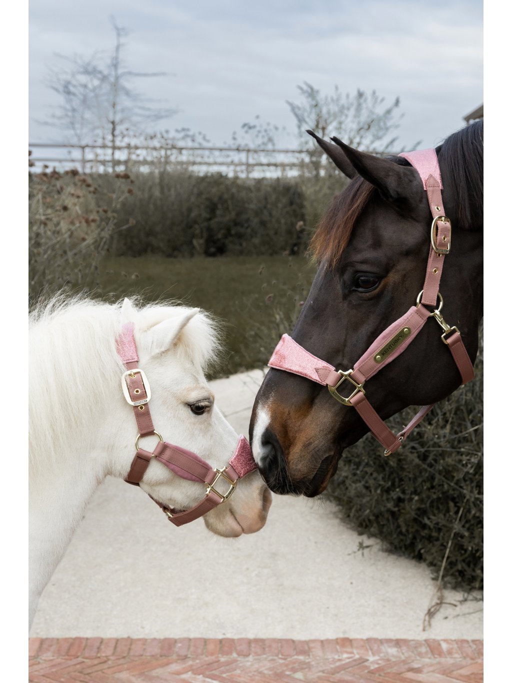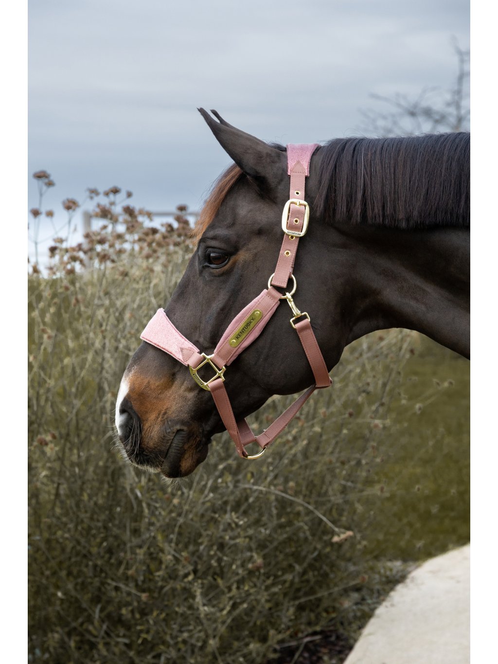 Stylová a pohodlná ohlávka pro koně s třpytivými detaily. Velvet Halter Unicorn Glitter v odstínu starorůžové kombinuje pevnost nylonu, měkkost sametu a luxusní zlaté detaily – ideální pro každodenní použití i slavnostní příležitosti.