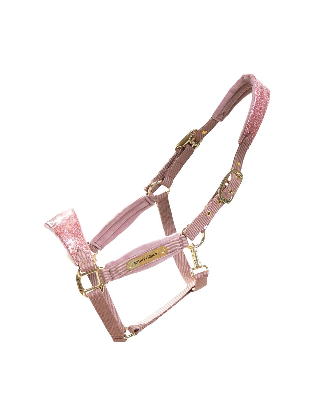 Ohlávka se třpytkami Kentucky Velvet Halter Unicorn Glitter Old rose