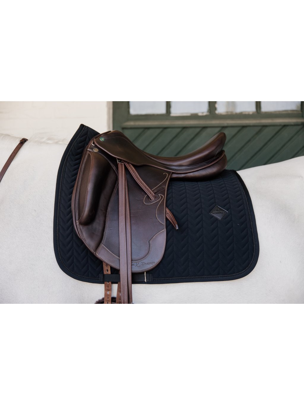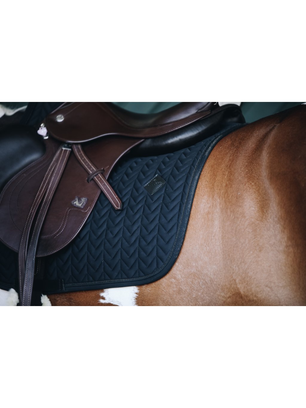 Kentucky Fishbone je stylová a funkční podsedlová dečka navržená speciálně pro drezurní nebo skoková sedla. Zaujme svým jedinečným rybím prošíváním a kvalitním prodyšným materiálem (kombinace nylonu, polyesteru a spandexu), který zajišťuje optimální cirkulaci vzduchu a pohodlí pro koně i při intenzivním tréninku.