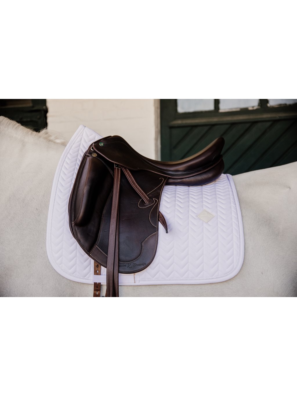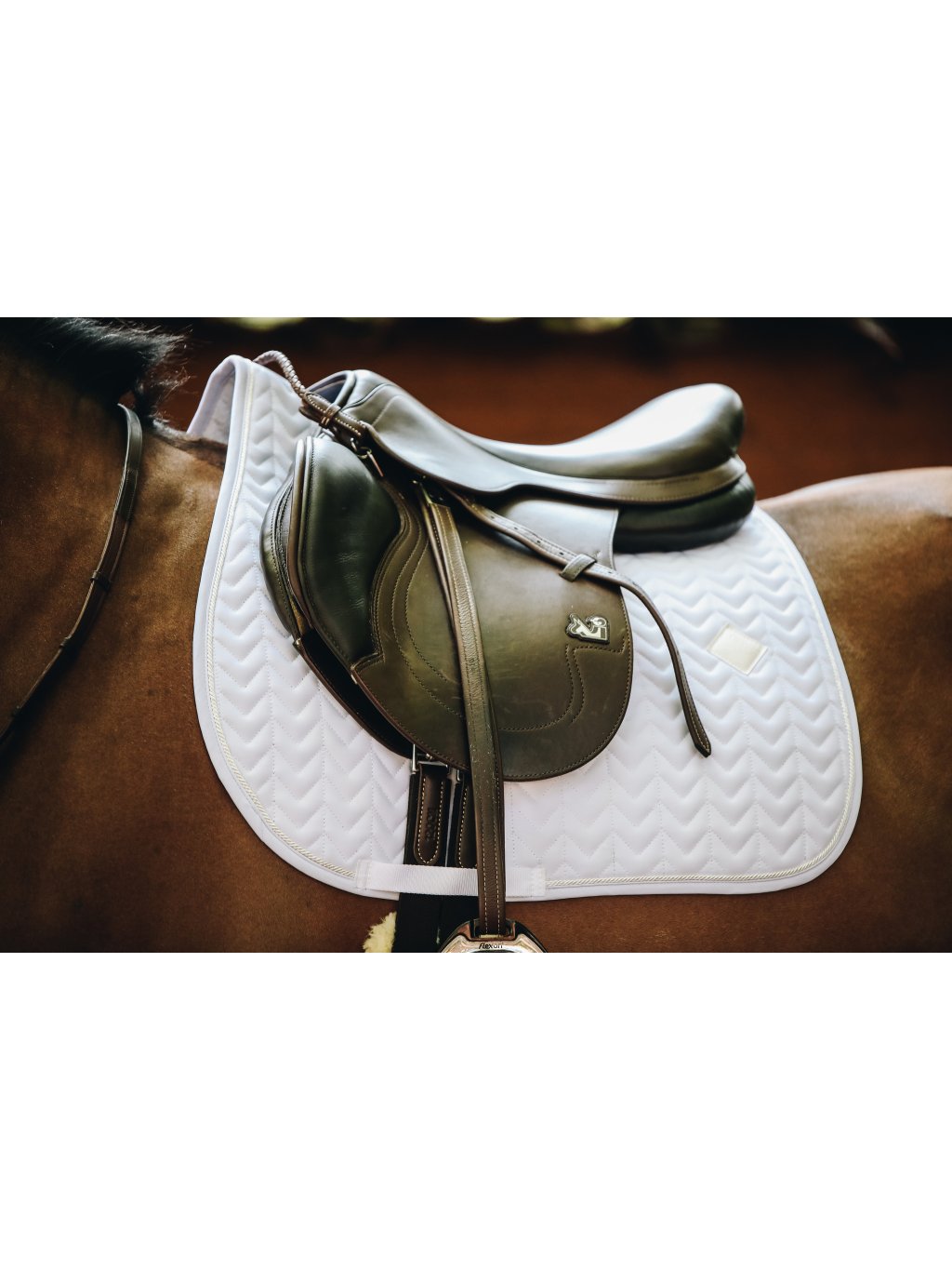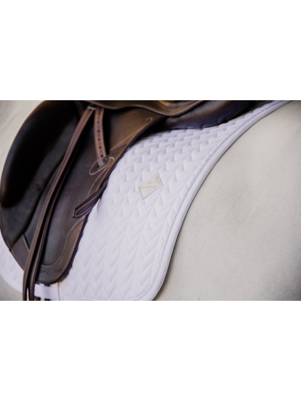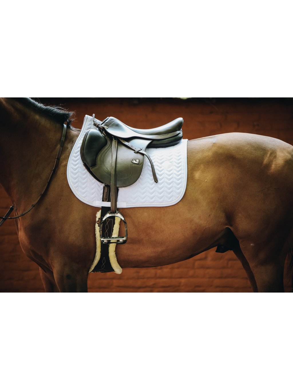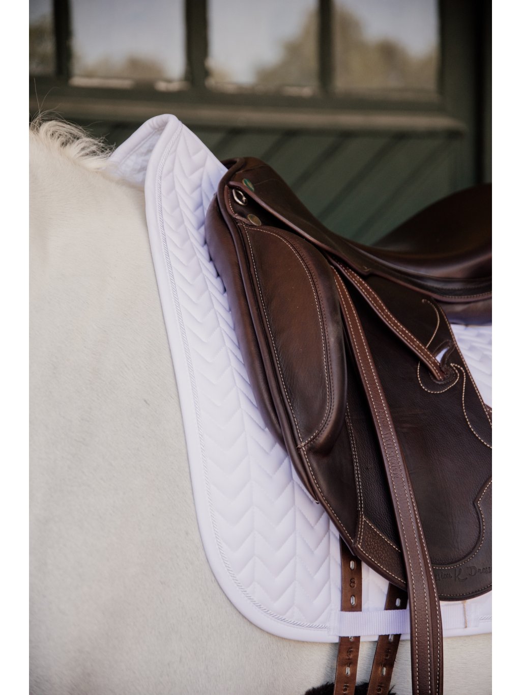 Elegantní podsedlovka v provedení pod drezurní nebo skoková sedla s originálním prošíváním a prodyšným materiálem. Bez úchytek k sedlu, pouze s úchytkami na podbřišník. Stylový vzhled doplňuje decentní kožené logo.
