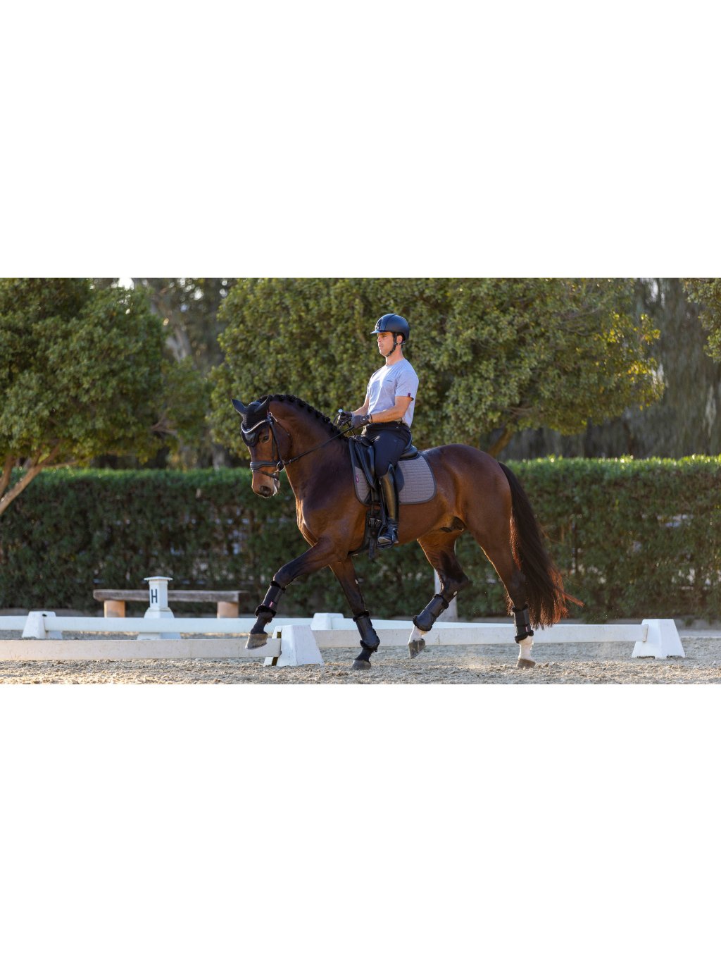 Díky vykrojenému střihu s vysokým profilem v oblasti kohoutku, charakteristické ochranné zóně podbřišníku a více možnostem zapnutí podbřišníku je dečka navržena tak, aby padla na širokou škálu drezurních sedel.