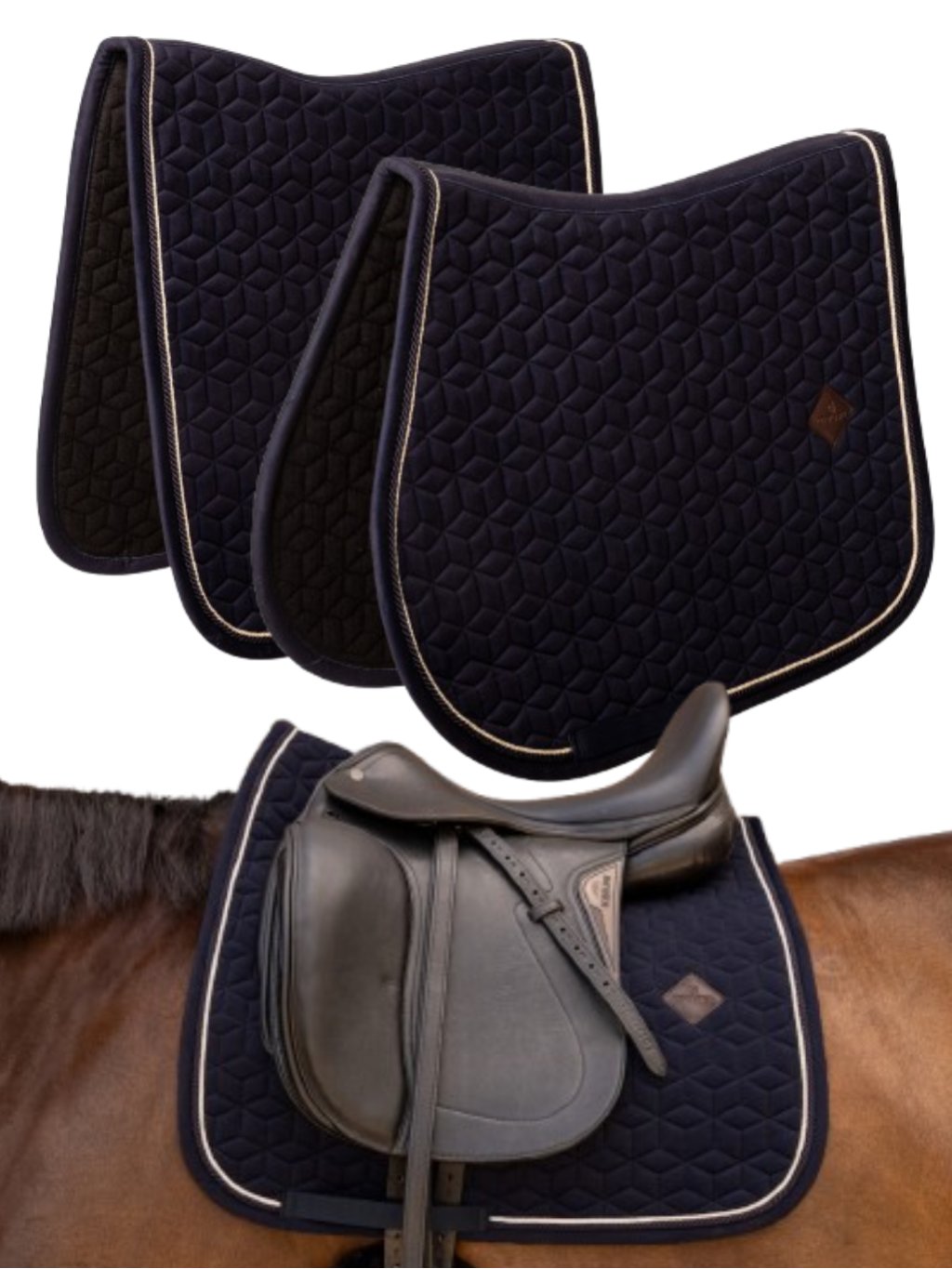 Luxusní sametová podsedlová dečka Velvet od Kentucky je elegantní a luxusní volbou pro každého jezdce, který chce styl i funkčnost. Dečka je vyrobena z měkkého sametového materiálu s originálním hvězdovým prošíváním a dvojitou kroucenou šňůrkou, která jí dodává výjimečný vzhled.