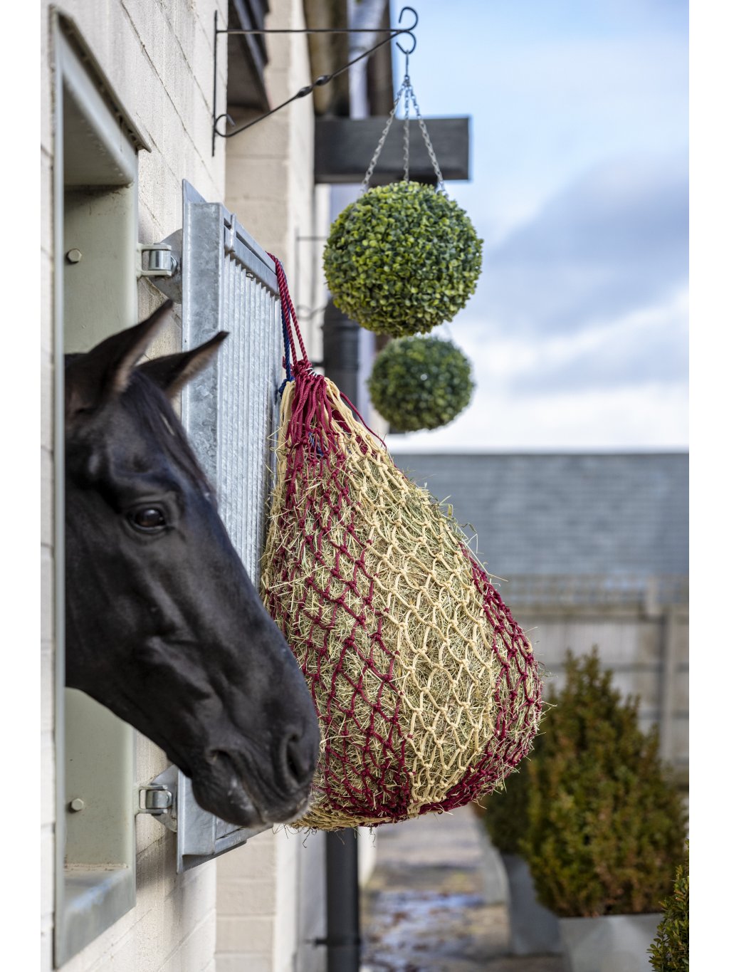 Kovové kroužky a pevné závěsné lano zajišťují vysokou odolnost a dlouhou životnost. Tato jednovrstvá síť má menší oka, která jsou ideální pro zpomalení příjmu krmiva, podporují lepší trávení a zároveň pomáhají zabránit plýtvání senem – to tak nepadá na zem ani se nemíchá s podestýlkou.