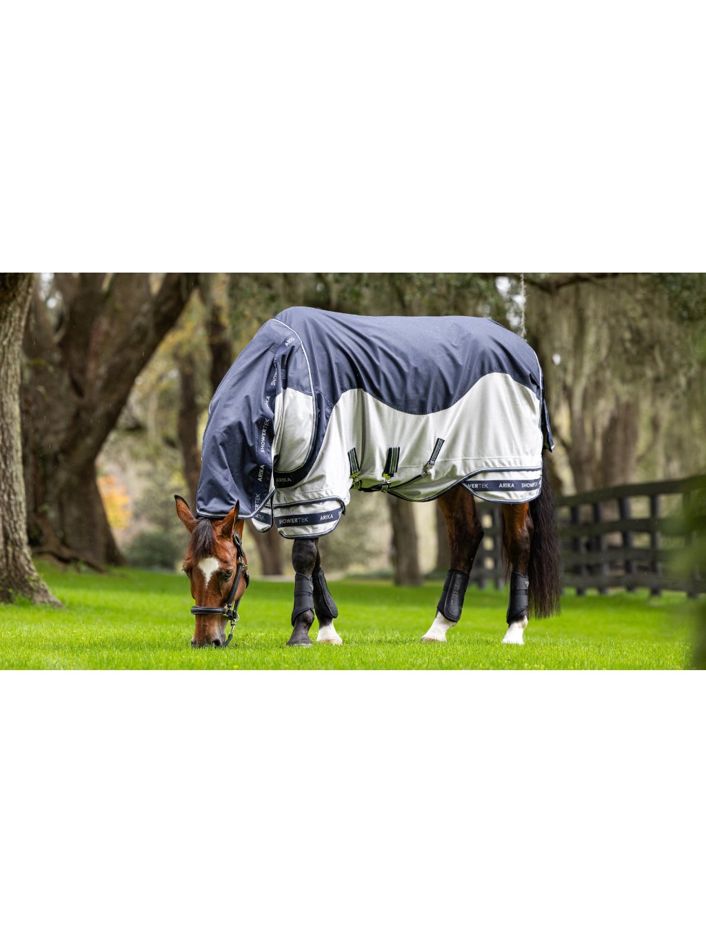 Inovativní hybridní deka je ideální do nepředvídatelného počasí. Odolná nepromokavá zádová část ochrání Vašeho koně před větrem a deštěm. Lehká mikrosíťka po stranách pak poskytuje ochranu proti hmyzu a podporuje cirkulaci vzduchu. Prodloužená tvarovaná chlopeň na břiše maximalizuje pokrytí co největší části koňského těla.