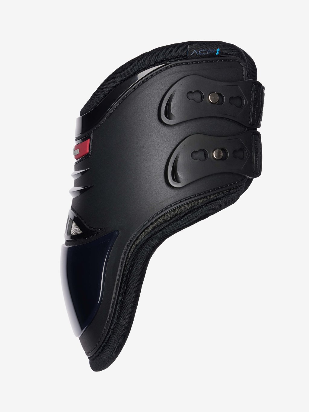 Do konstrukce kamaše je integrována vrstva biometrického materiálu ACF® (umělá chrupavková pěna), která dokáže absorbovat a rozptýlit až 90 % nárazu – ať už při silném dopadu koně, nebo při přímém úderu do kamaše.