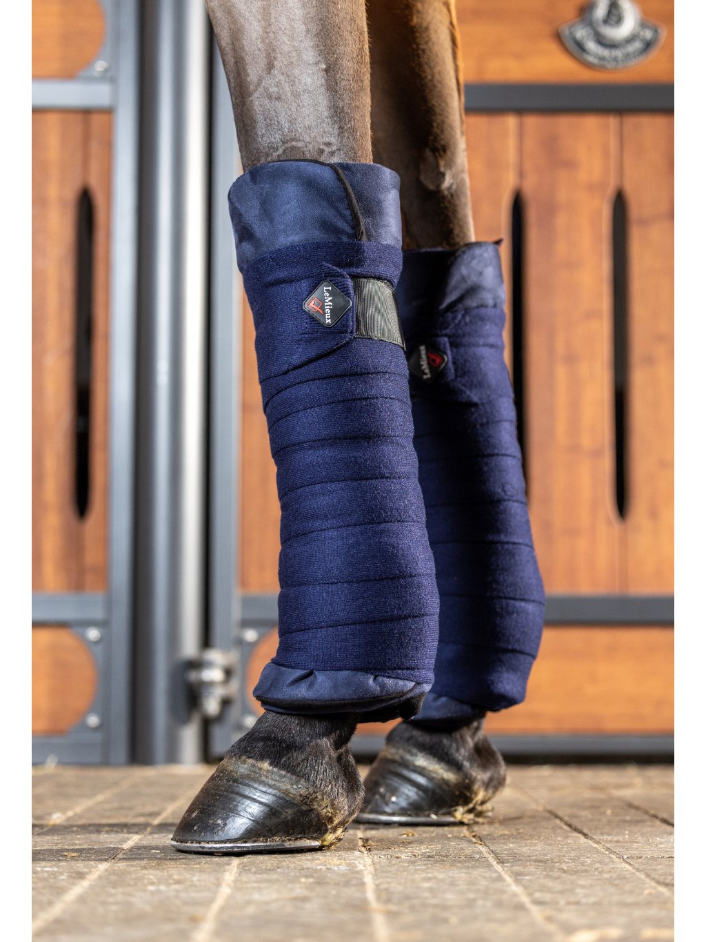 Vysoce kvalitní stájové bandáže od značky LeMieux jsou odolné a navržené pro dlouhou životnost. Jsou vyrobeny z pevné pletené tkaniny a zapínají se pomocí suchého zipu, který zajišťuje bezpečné a snadné upevnění.