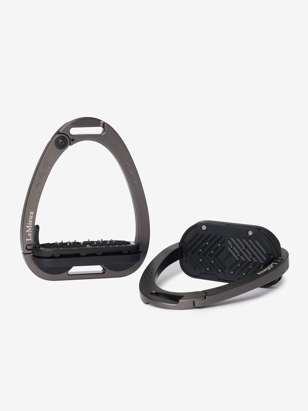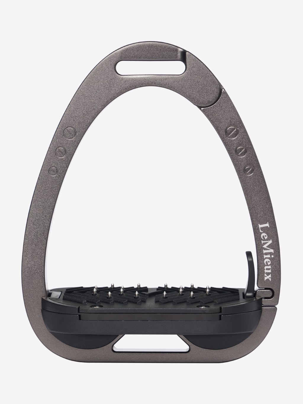 Nášlapná plocha chodidla je podepřena systémem dvojité balanční klenby, která rovnoměrně rozkládá hmotnost na základnu třmenu. Vrchol rámu je zapuštěný a posunutý, což podporuje orientaci 45º směrem ven, což jezdci usnadňuje najít optimální úhel pro nohu a získat zpět ztracený třmen.