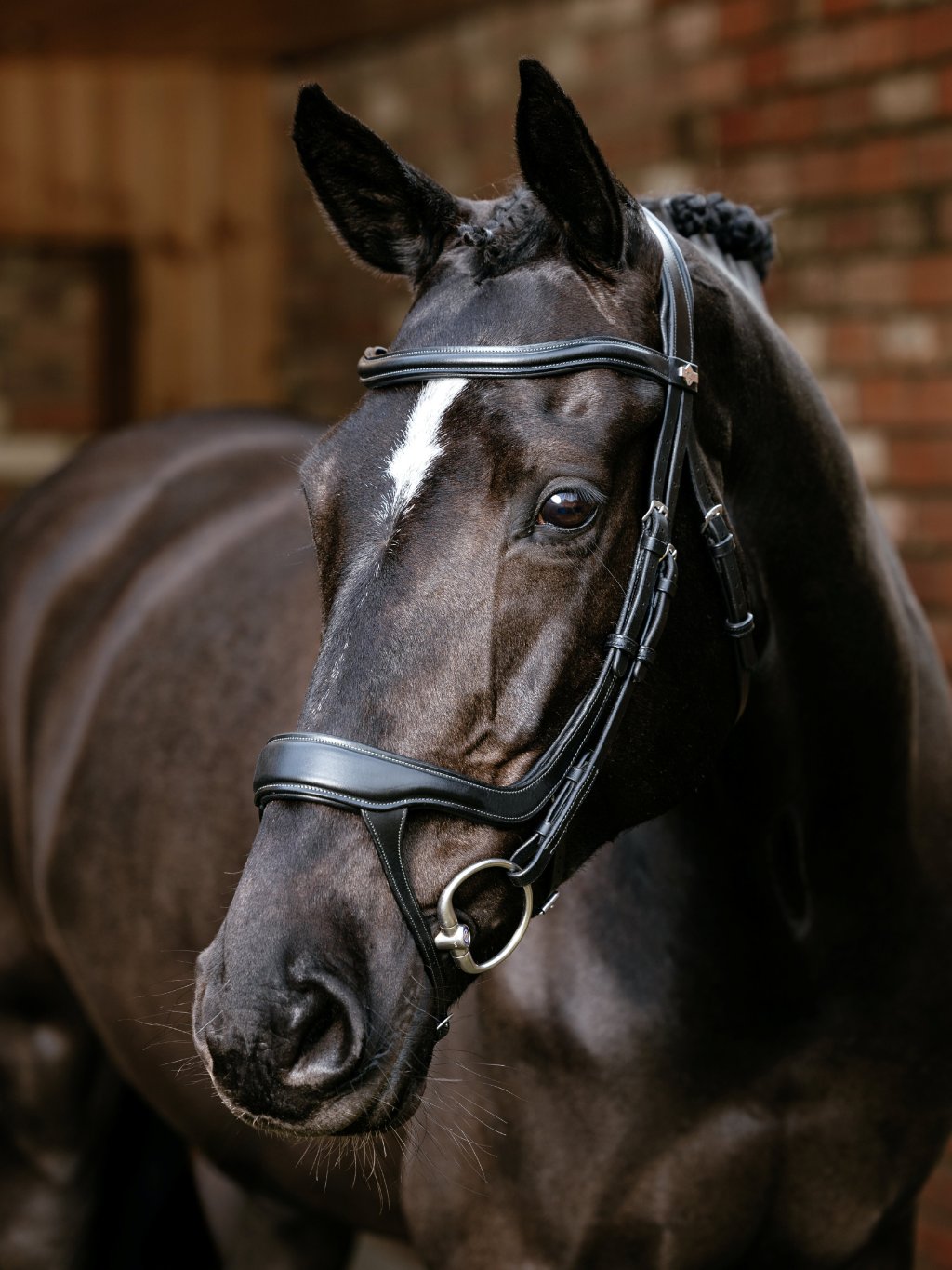 Lehce polstrovaná a vyrobená z jemné a poddajné olejované kůže, tato uzdečka maximalizuje pohodlí koně a rovnoměrně rozkládá tlak přes širší plochu nosu a lící, s výborným prostorem pro nozdry.