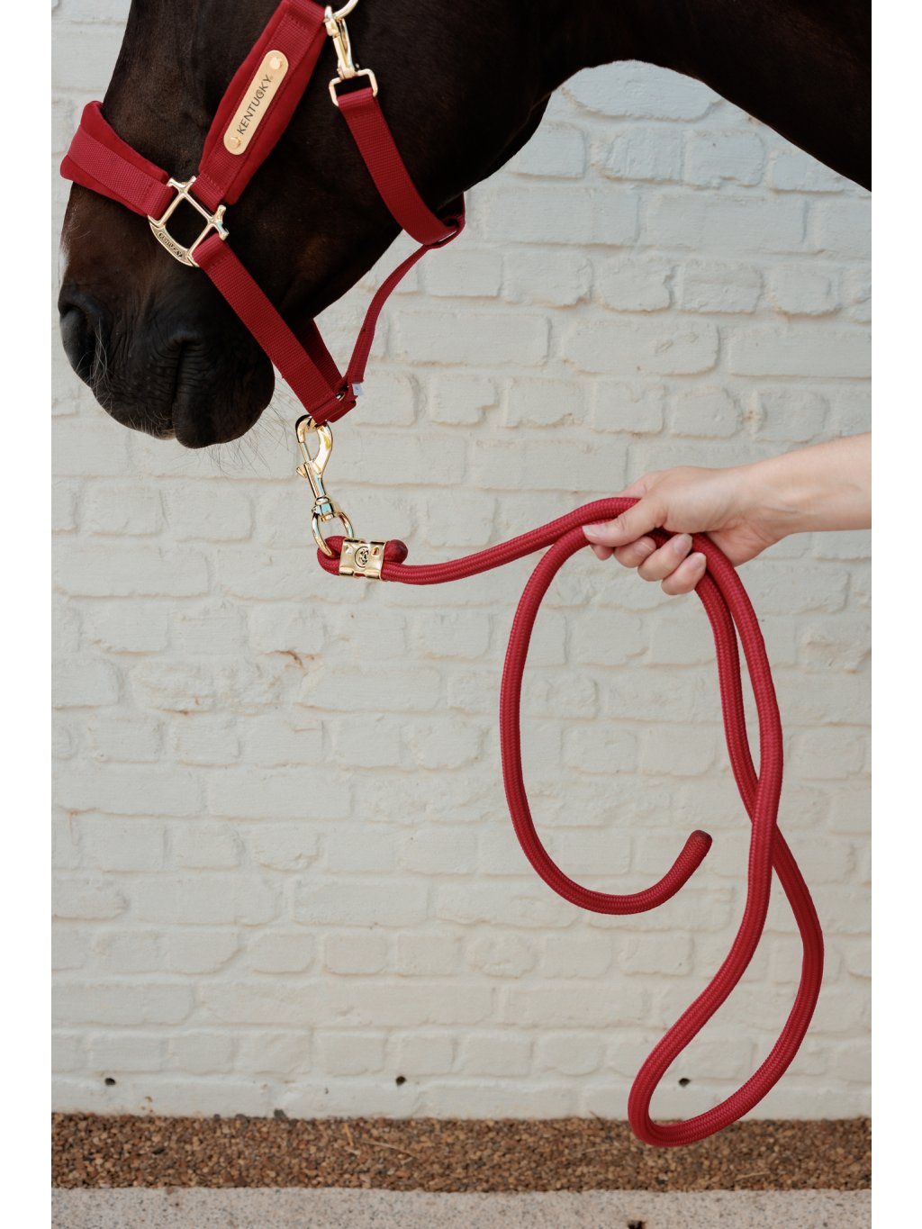 Vodítko Basic od Kentucky je spolehlivý pomocník pro každodenní použití ve stáji nebo při přepravě. Je vyrobeno z pevného, hustě pleteného nylonu, který je zároveň velmi měkký a příjemný na dotek. Díky tomu se s vodítkem dobře manipuluje a drží pohodlně v ruce.